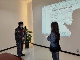 活動中,兩兩分為一組,一人陳述總書記在二十大開幕式上的重要講話和共青團建團100周年大會上的重要講話中的金句,另外一個人戴著耳機看著對面那個人的口型去描述,現(xiàn)場氣氛歡快熱烈。