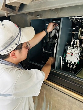 為了保障車輛空調(diào)穩(wěn)定運行,駐北京南售后服務(wù)人員李佩俊正在進(jìn)行空調(diào)變流器改造,長編的動臥車組空調(diào)數(shù)量多,檢修庫內(nèi)溫度高,加之北京近期持續(xù)40°高溫天氣,李佩俊克服了種種困難,保障改造順利完成。